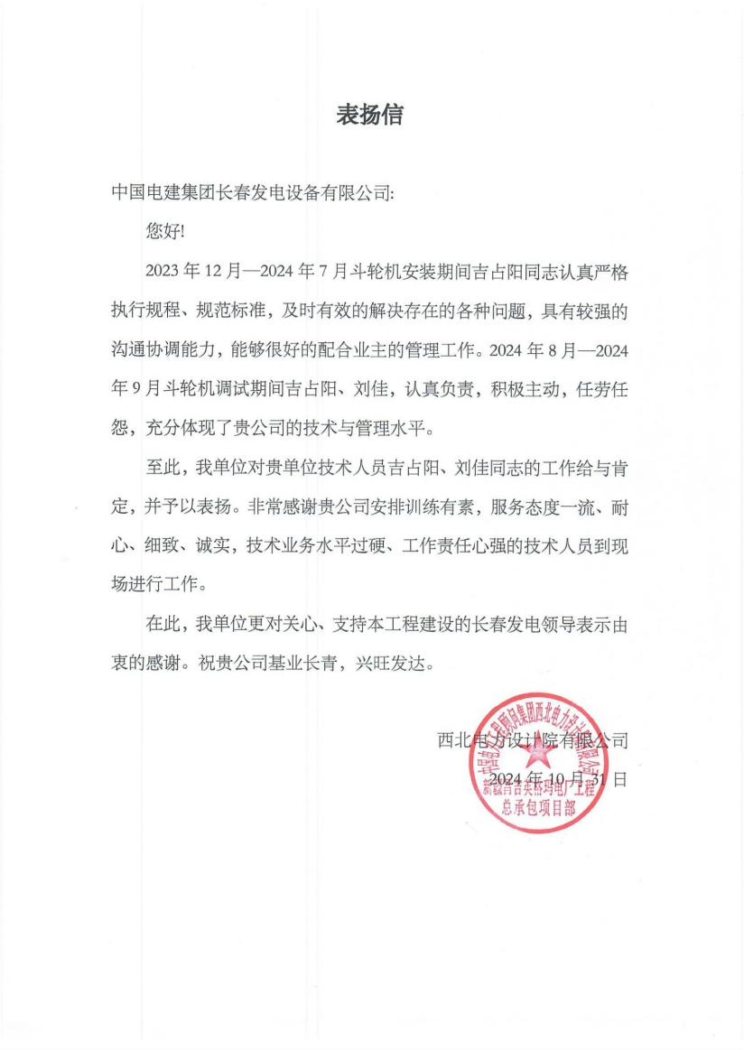 喜報——長春設備公司榮獲中國電建科學... 01-07